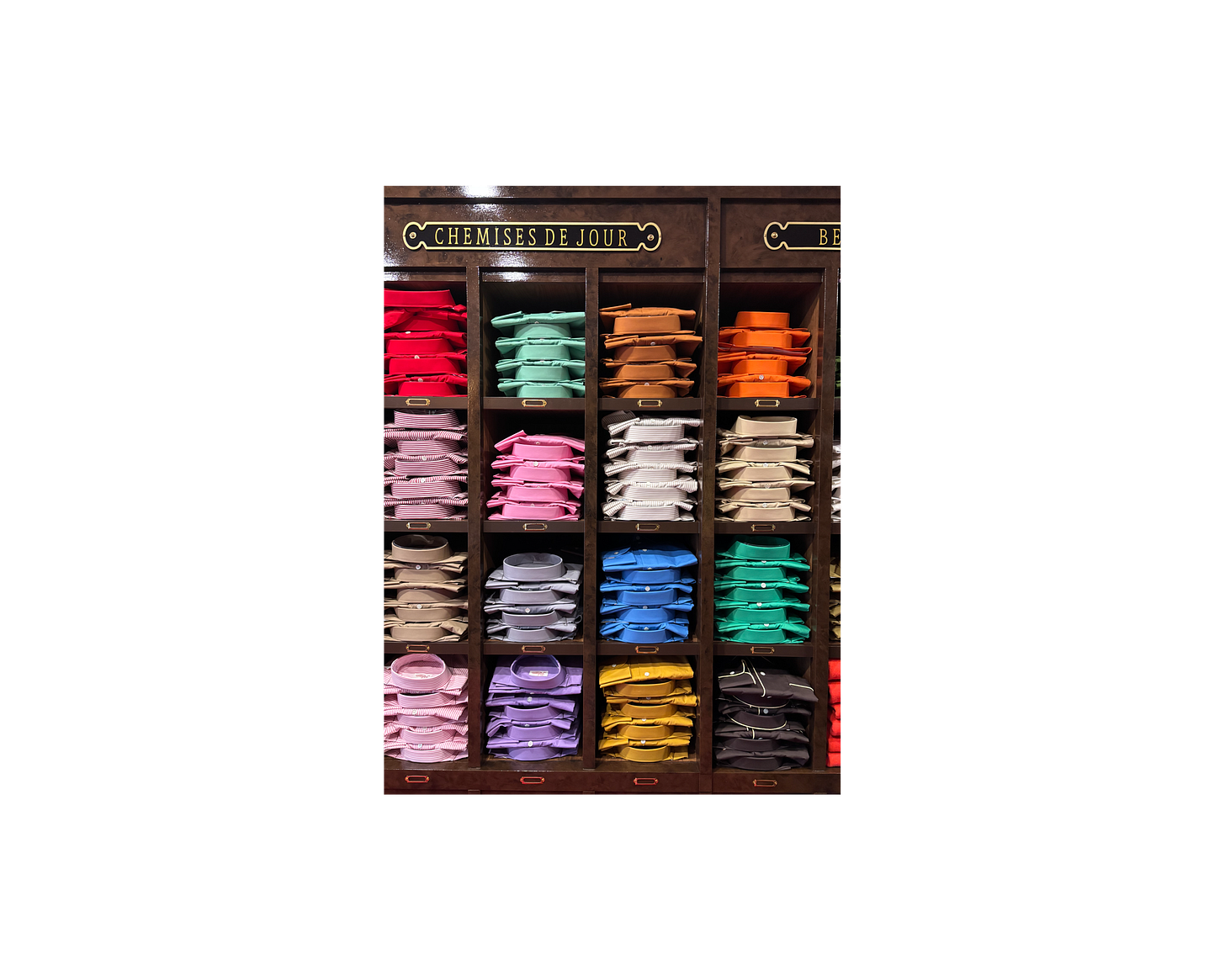 A great store is a portrait of its proprietor: Calvin Klein’s mid-90s New York flagship; Sarah McNally’s Goods for the Study; Andy Spade’s menswear wunderkammers. Add to this gallery of retail greats young Rubirosa’s, on Rue de Grenelle, just south of the Seine. If Rubirosa’s is a portrait, it is a Rococo one — rendered by Boucher, who would delight in the painterly palette that greets guests inside. Spanning just 450 square feet, Rubirosa’s buzzes with staff and shoppers poring over quintessential Parisian keepsakes: poplin pajamas and shirting (available in 35 hues), sweaters in achingly supple cashmere (available in 15), and leather loafers. Without ever speaking to its founder, designer Lauren Rubinski, you can surmise a few things about her just by visiting. For one, she’s bored by the tyranny of quiet luxury. Her embrace of color — from the crimson carpet to the rainbow of wares stacked like antiquarian books in ebony shelving — is enough to make the Spartan in me want to trade my closet of neutrals for their more interesting cousins in vermilion, mustard, or turquoise. She believes culture is porous. While the aesthetic skews Old Europe — her grandfather supplied the Vatican with poplin — the store flirts with cultural influences in a way that feels both erudite and lighthearted, just right for the melting pot that is Paris. The walls are lined with portraits commissioned from an artist in Côte d’Ivoire, depicting stylish men of history, from Pavarotti to Maradona to the Congolese dictator Mobutu Sese Seko. As you shop, these luminaries of style seem to dare you to choose the bolder color, or to splurge on a pair of crocodile-embossed slippers in a pope-worthy red. She also has a great sense of humor. On the exterior, a list of exotic cities, from Monaco to Cairo, ostensibly marks the store’s global locations — a cheeky fiction true to the fantasy Rubirosa’s invites you to inhabit, if only for an afternoon.